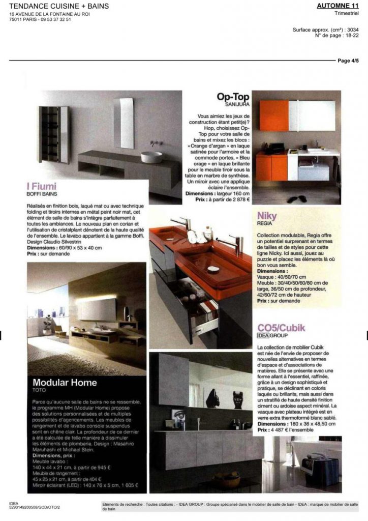 Коллекция Cubik – Журнал Tendance Cuisine + Bains, осень 2011 «Необычная» коллекция Cubik в статье, посвященной мебели для ванной комнаты.