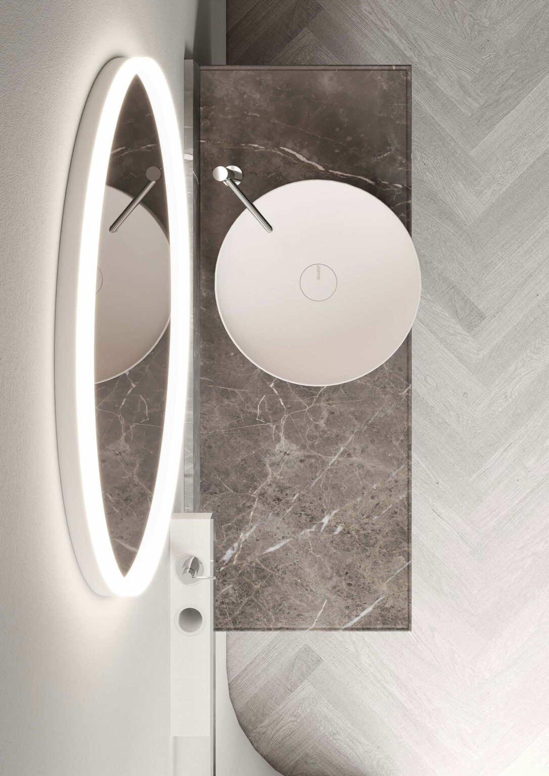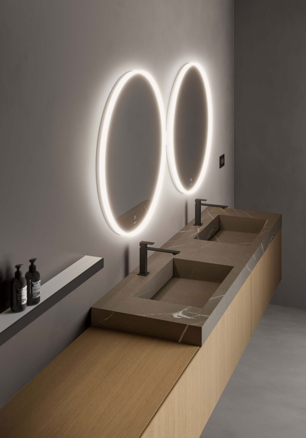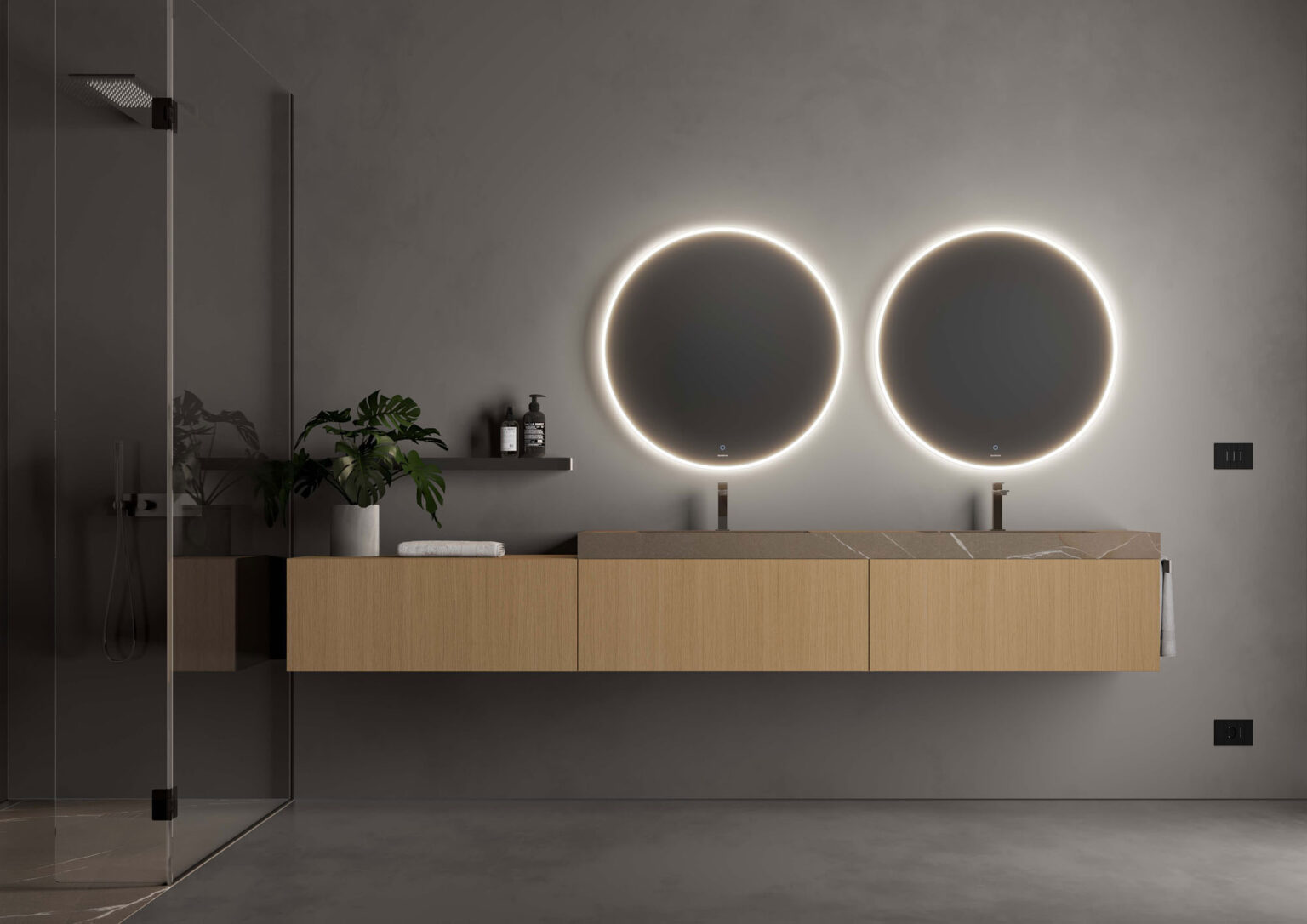 Зеркало Eclissi c периметральным освещением; включение Touch on/off и система смены интенсивности 2 700/6 000 К.