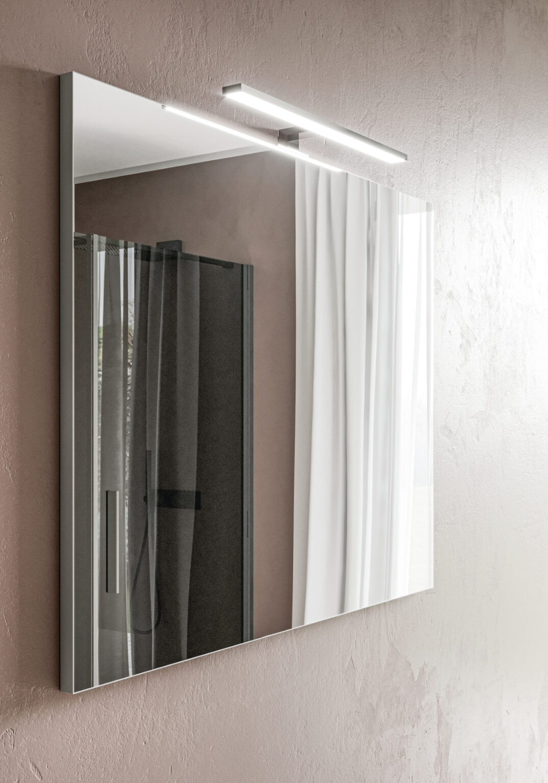 Зеркало Elma В 70 с рамой из полированного хрома. Горизонтальная или вертикальная установка. Совместимо с лампами Cubik, Double, Lido, Reflex, RS, Strip, Symply, Time, Web и Piuma.