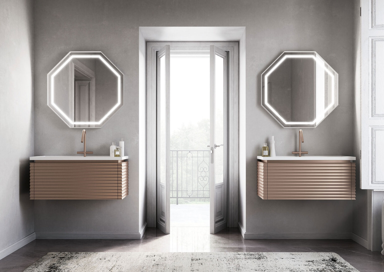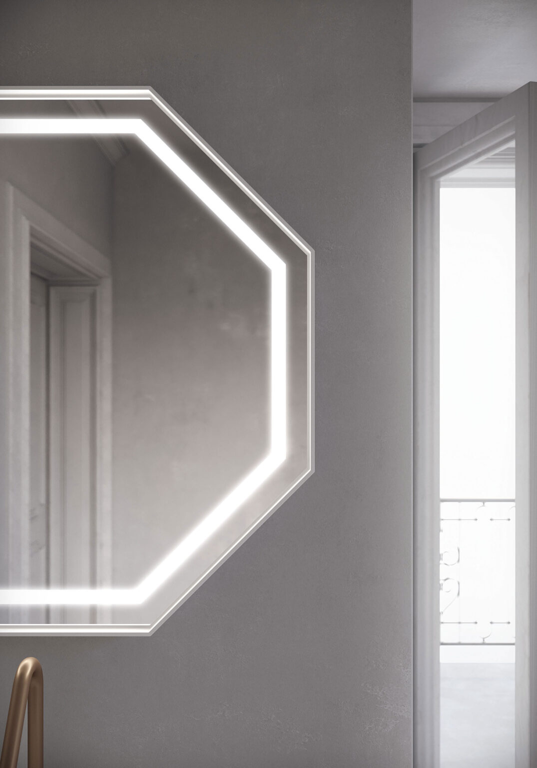 Восьмиугольное зеркало Ottagono со светодиодной подсветкой по периметру.