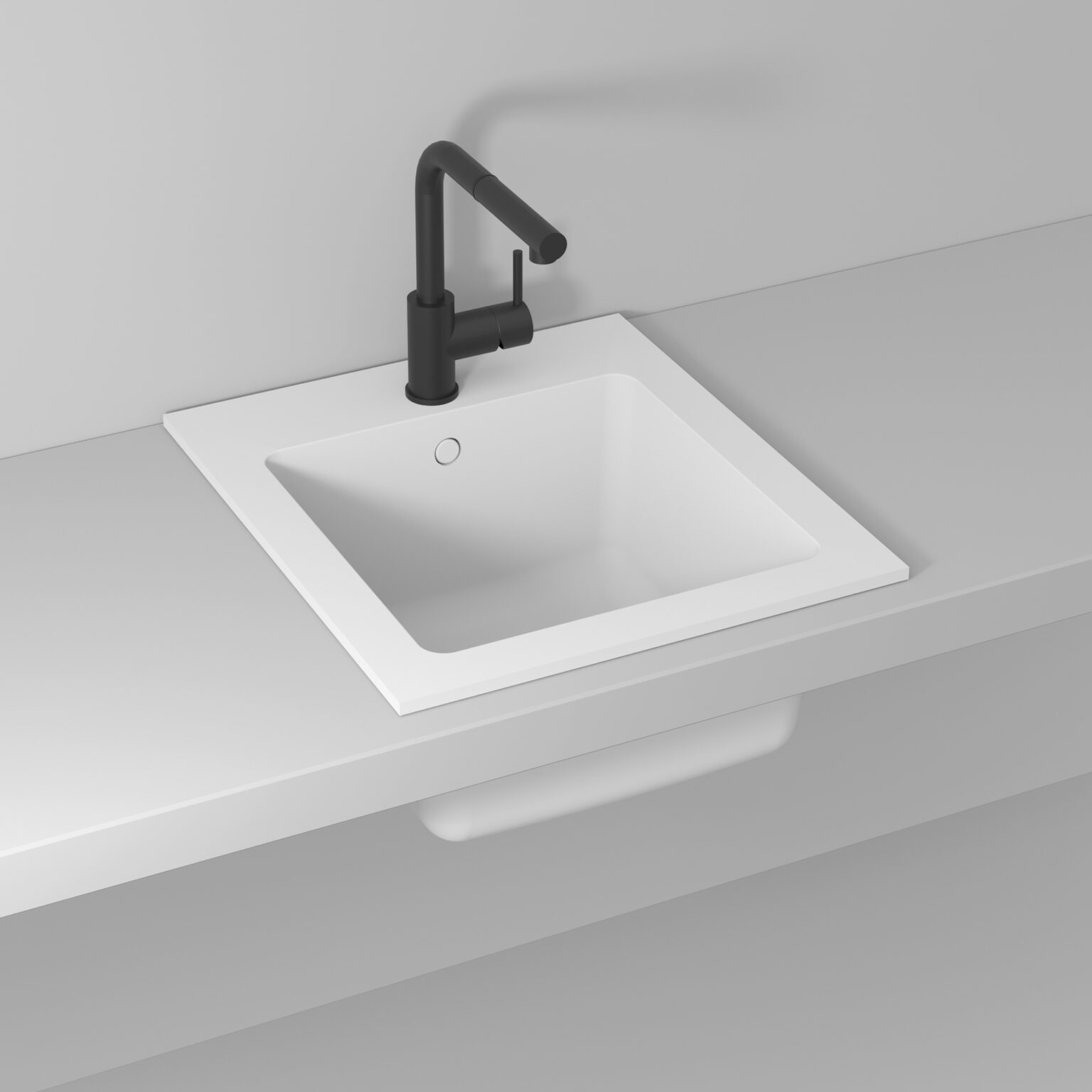 Мойка типа К из глянцевого и матового белого материала Acritek, с отверстием для смесителя (без отверстия по запросу), с переливом в комплекте с заглушкой в отделке.