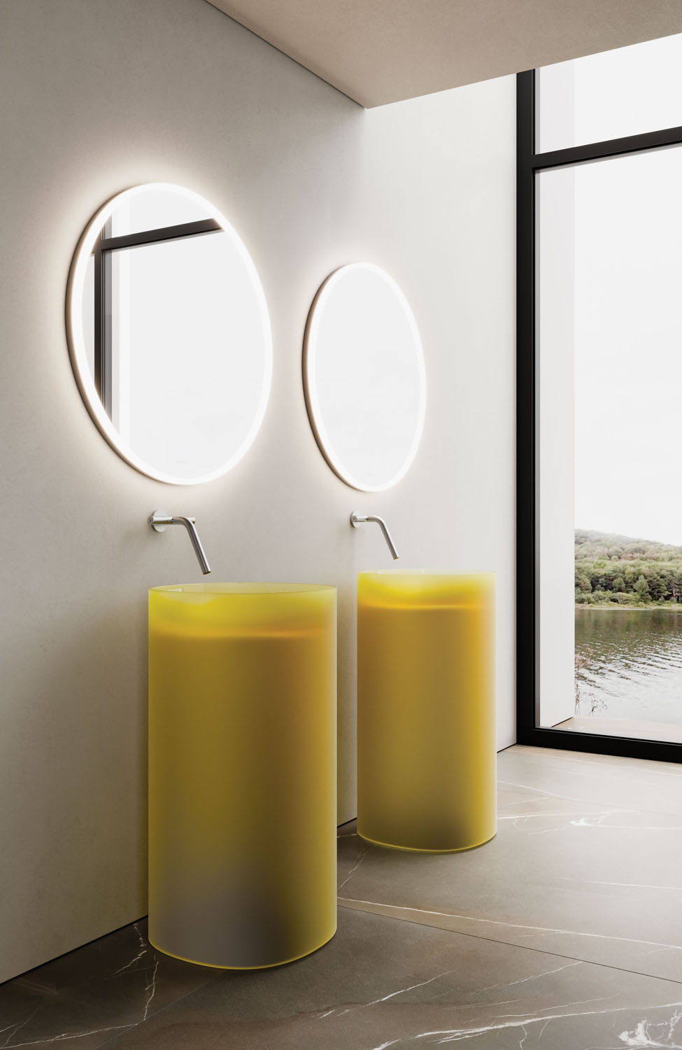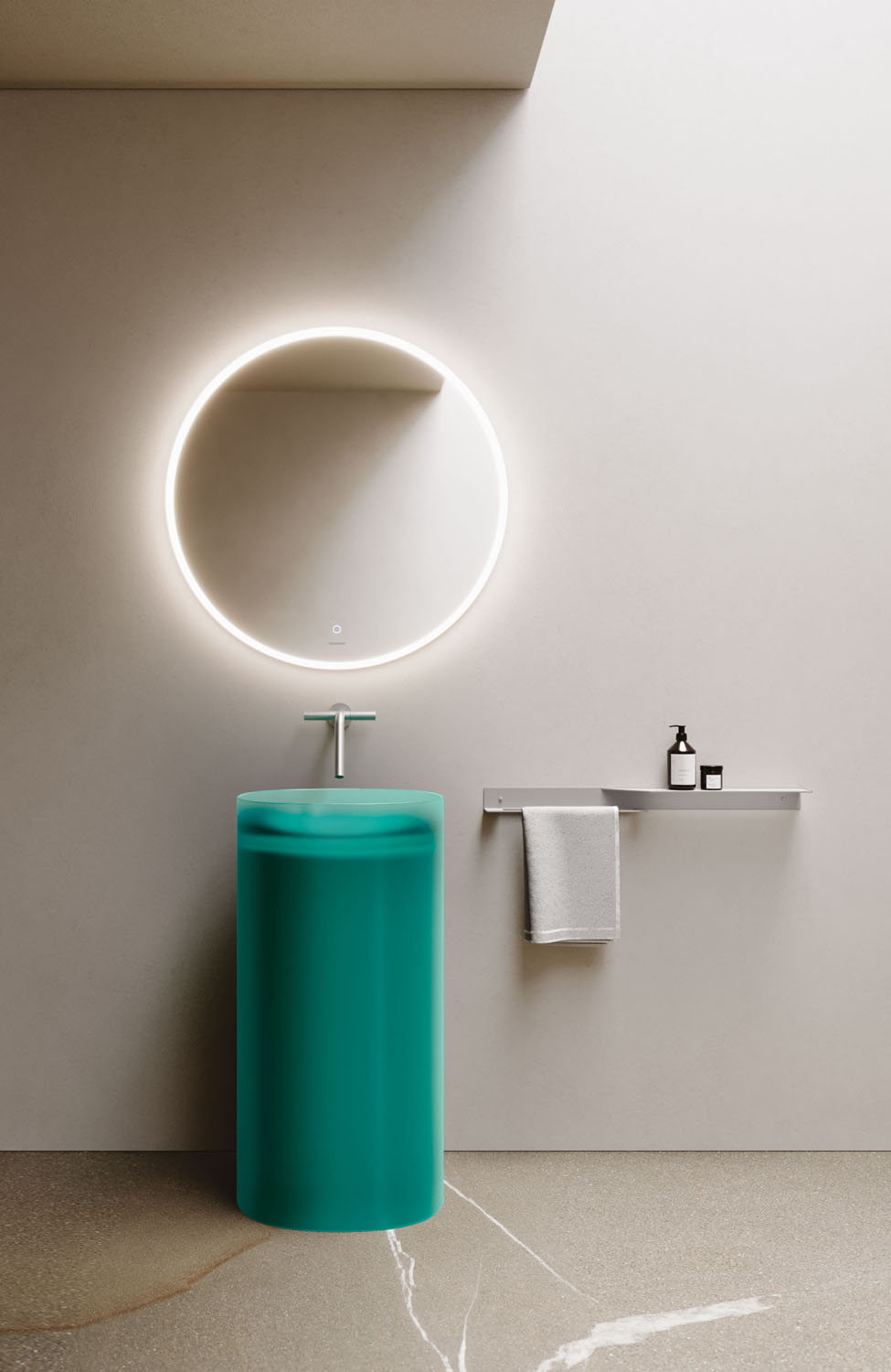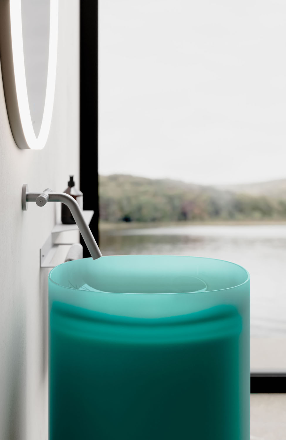 Отдельностоящая раковина Habe из Khromalite с глянцевой отделкой снаружи и внутри или с сатинированной отделкой только снаружи. Поставляется в 5 цветах; без перелива