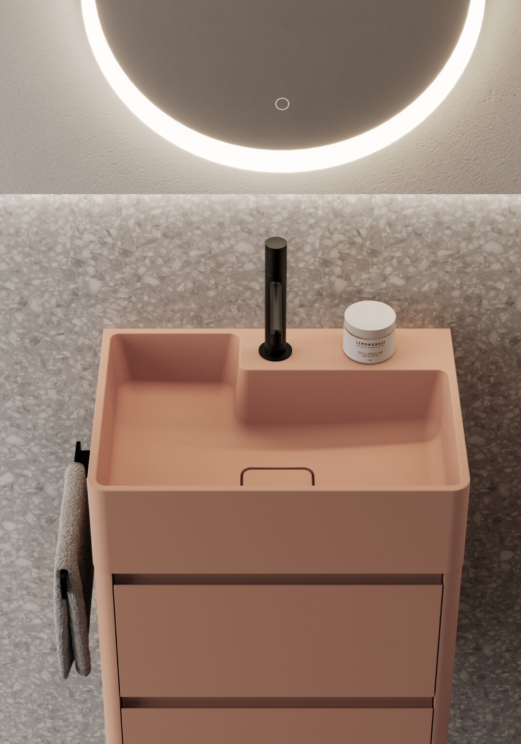 Aquagel – это композит из природных минеральных наполнителей и полимерных смол, покрытый смоляной пленкой, которая придает изделию абсолютную непроницаемость, отличную стойкость к химическим веществам и тактильные ощущения, очень похожие на ощущения от керамических изделий, но с превосходными эксплуатационными характеристиками и большими эстетическими возможностями. Он доступен как в глянцевом, так и в матовом исполнении, в белом варианте или в цветных версиях из каталога образцов Ideagroup (за исключением черного цвета и Metal Color). Этот материал также обладает антибактериальными, огнестойкими и самозатухающими свойствами.