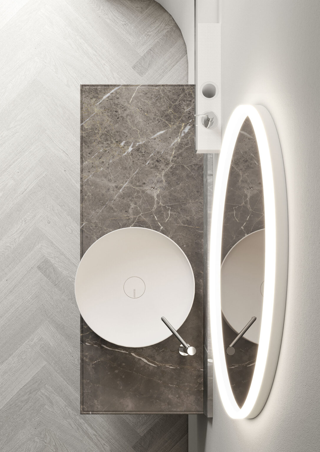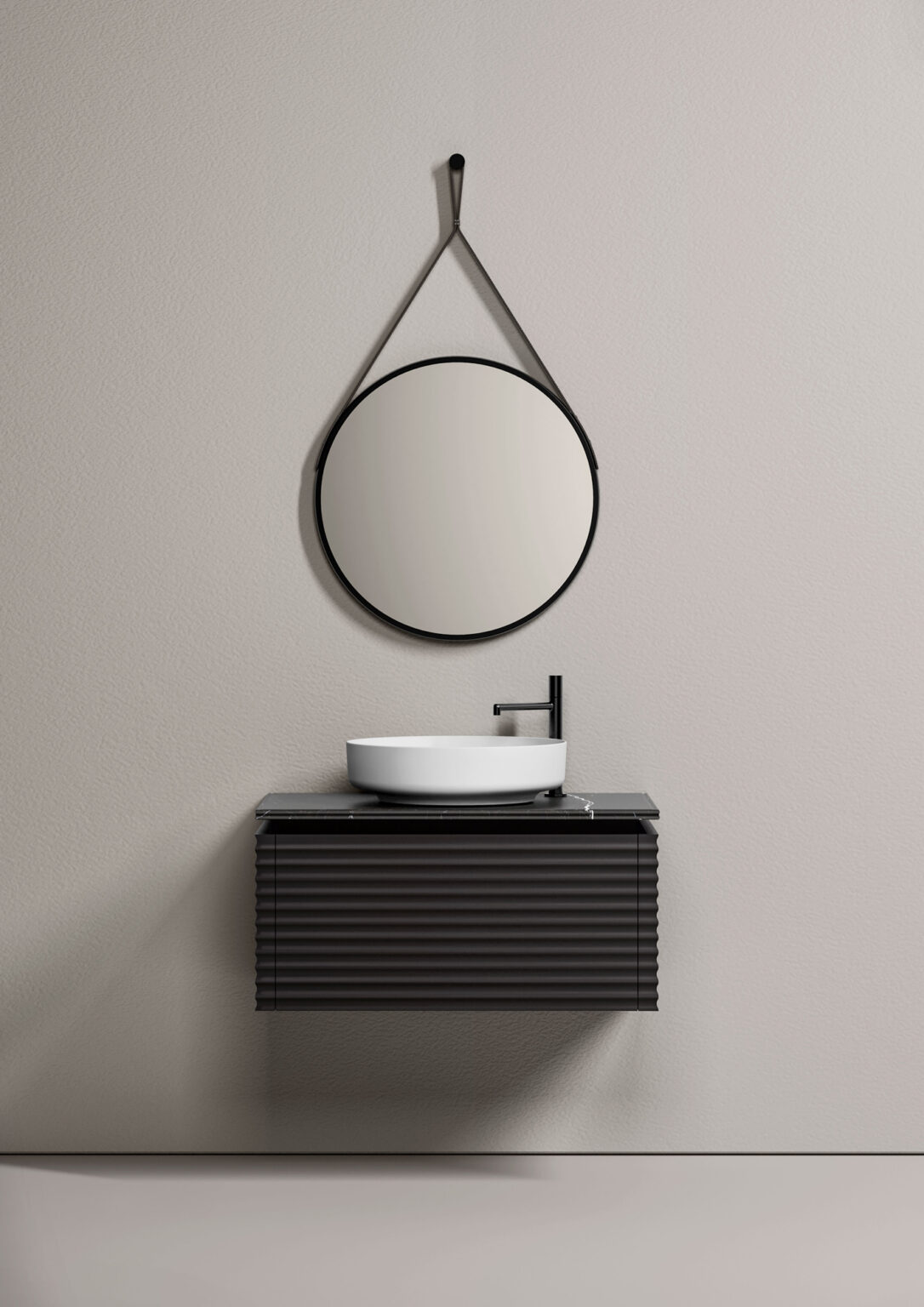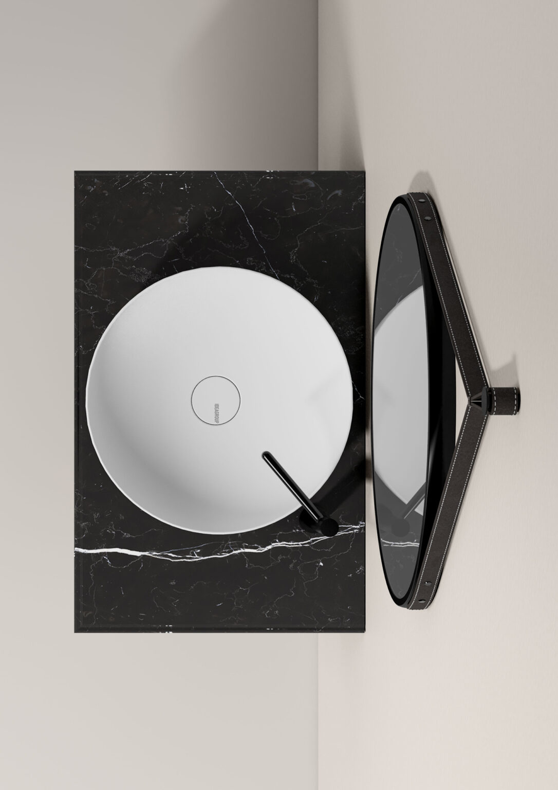 Накладная раковина Dream из белой глянцевой, белой матовой и черной матовой керамики, без перелива. Поставляется для линейных столешниц глубиной 45,5 см.