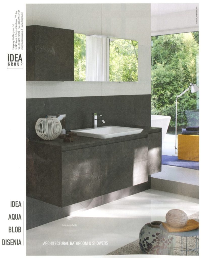 Мебель для ванной Cubik в журнале 100Idee per Ristrutturare — № 5/2011 Минималистская мебель для ванной Cubik предлагается в отделке materica effetto ardesia.