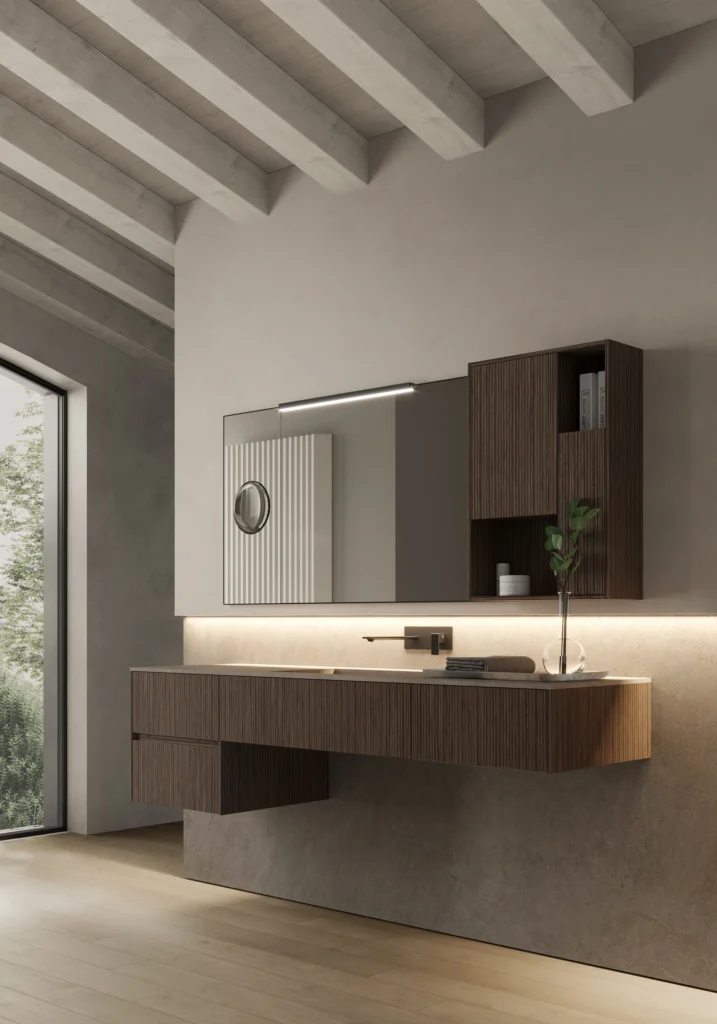 Коллекция Nyù представляет собой суть элегантной и сдержанной мебели для ванной комнаты, сочетая в себе изысканные материалы и приятные оттенки для создания изысканной и стильной мебели для ванной комнаты.