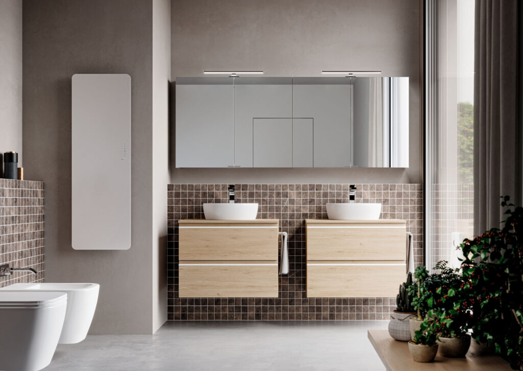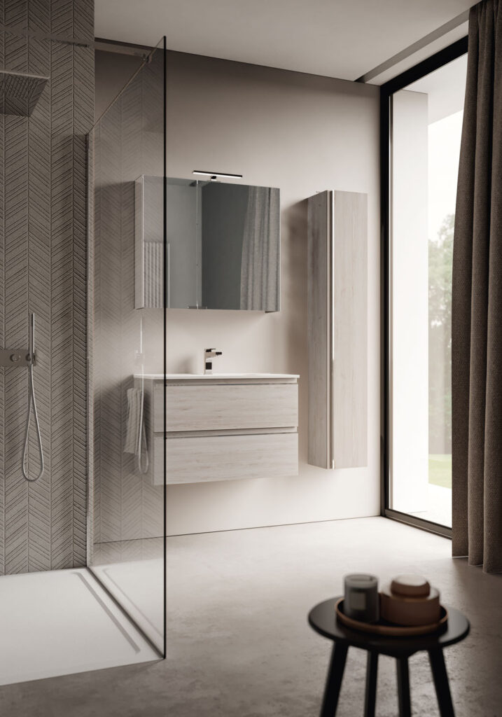 System – это коллекция, характеризующаяся компактной мебелью для ванных комнат с отличной вместимостью и компактными размерами (глубиной до 38,5 см).