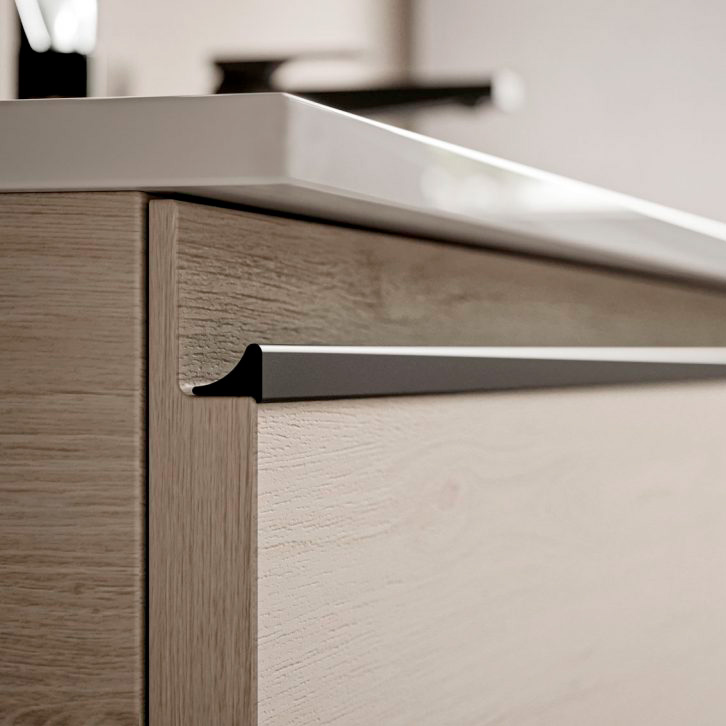 Мебель из коллекции System доступна в напольном или подвесном исполнении в широком диапазоне отделок и может сочетаться с различными вариантами умывальников (отдельностоящими или встроенными) уменьшенной глубиной (до 38,5 см) для удовлетворения потребностей помещения. Ручка доступна в трех вариантах отделки (белый, черный матовый, хром).