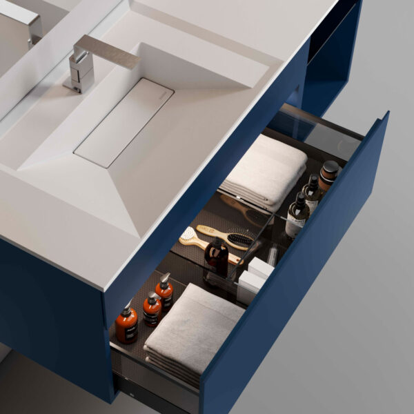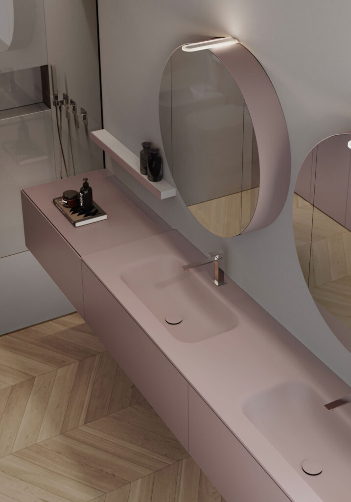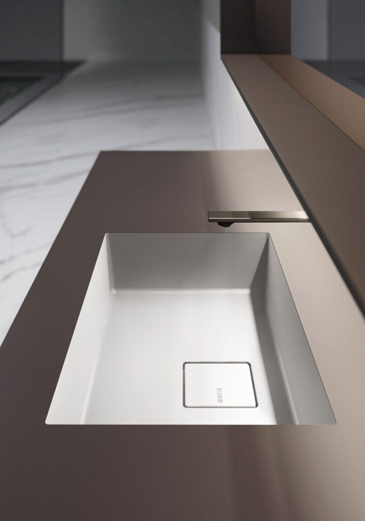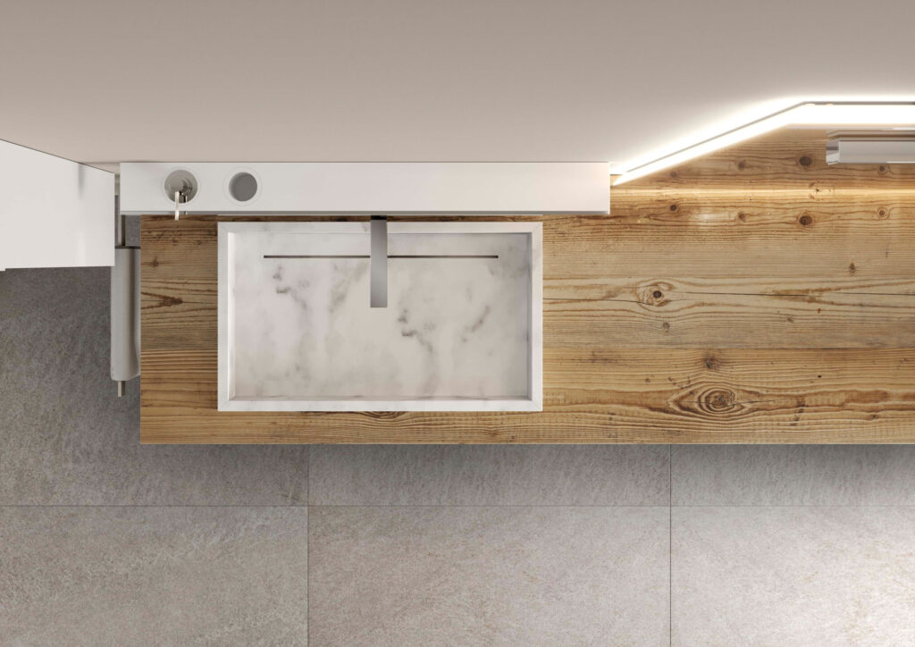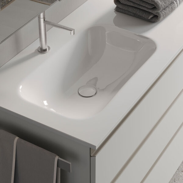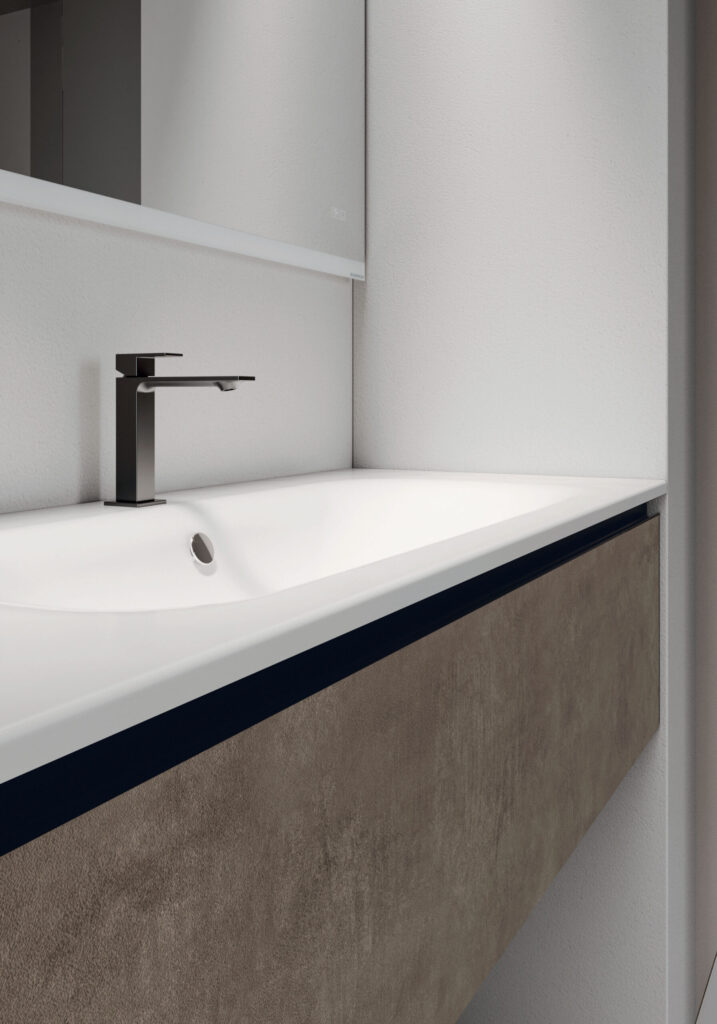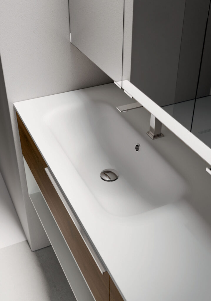 Столешницы duplex состоят из поверхности HPL и раковины Mineralsolid. Они доступны толщиной 1,2, 6 и 12 см. HPL – это материал превосходного качества с точки зрения его функционального и эстетического потенциала. Он устойчив к износу и воде, гигиеничен и универсален в обработке, сохраняет свои эстетические характеристики и эксплуатационные характеристики неизменными на протяжении всего срока службы. Внутри он состоит из слоев целлюлозных волокон, пропитанных фенольными смолами, а снаружи – из одного или нескольких слоев целлюлозных волокон с эстетической функцией, пропитанных термореактивными смолами и соединенных вместе методом высокого давления в соответствии со стандартом EN 438:2005. Особая компактность HPL обеспечивает устойчивость к изгибу, растяжению, сжатию и ударам. Раковина изготовлена из материала Mineralsolid. Гелькоутная пленка (800-1000 мкм), покрывающая поверхность материала, представляет собой акрилатный полиэстер и придает матовую поверхность. Особенностью данного покрытия является возможность восстановления поверхности, подобно изделию Solid Surface.