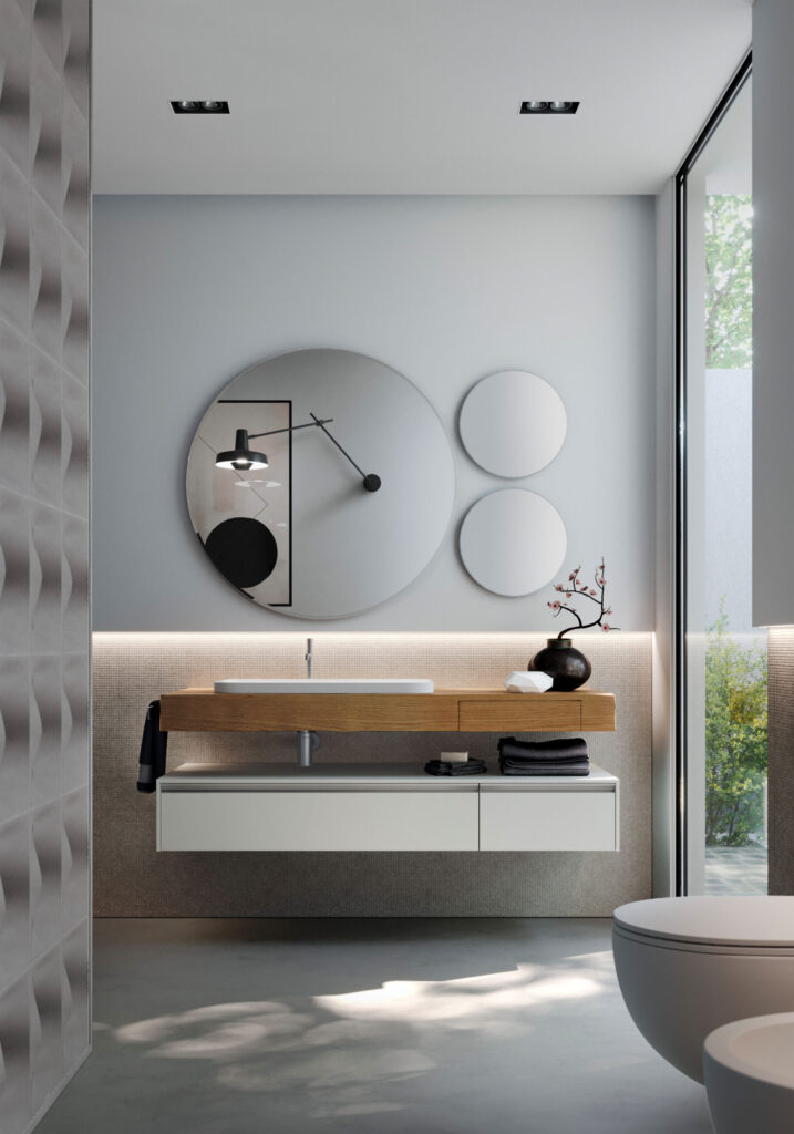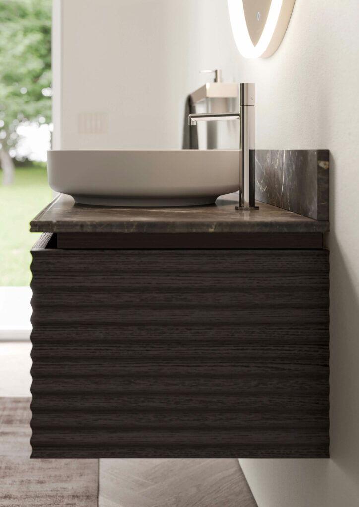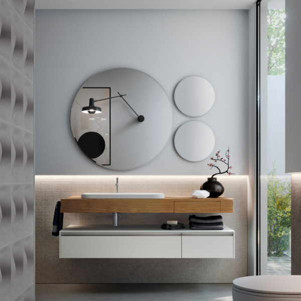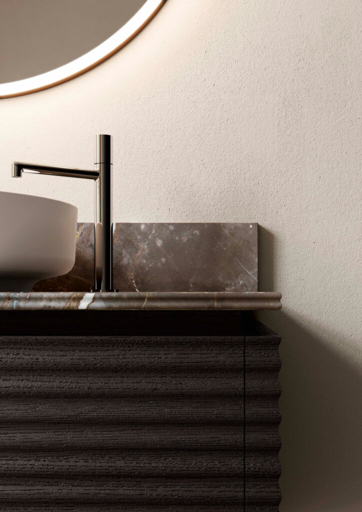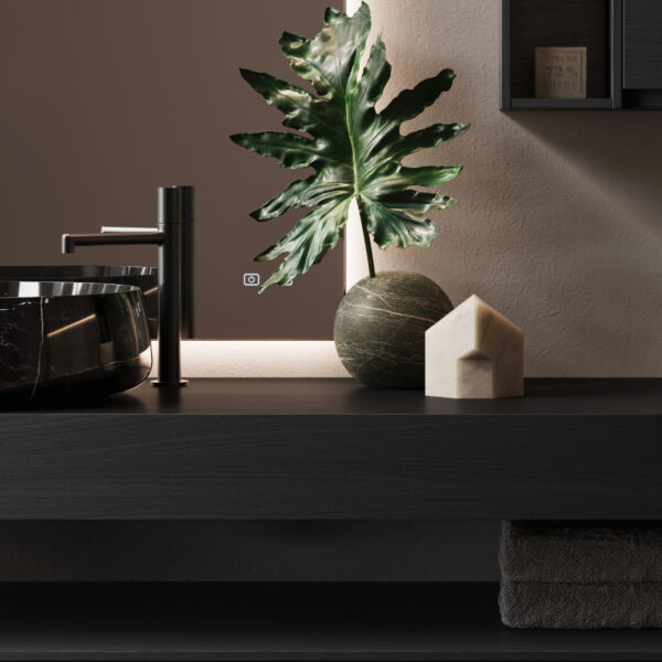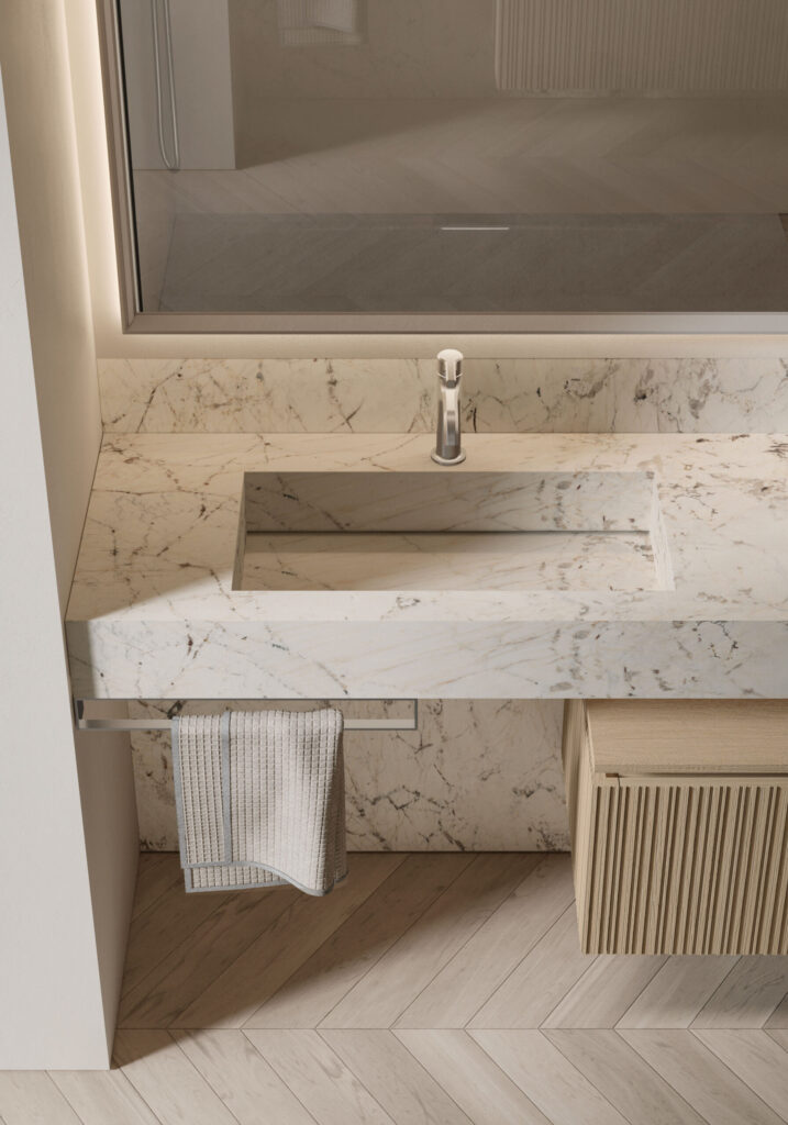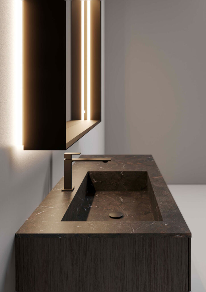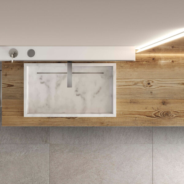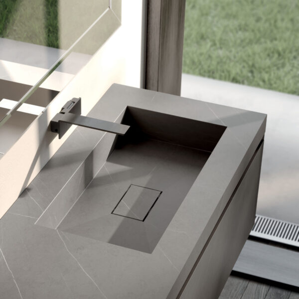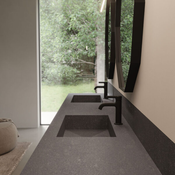 Laminam представляет собой смесь глин, полевых шпатов и кремнеземов. Обладает высокой устойчивостью к механическим нагрузкам, химическим воздействиям, царапинам и истиранию. Чистка чрезвычайно проста и даже при частом использовании не изменяет поверхность. Поверхность гарантирует максимальную гигиену, поскольку не допускает размножения бактерий, плесени и грибков внутри ванной комнаты.