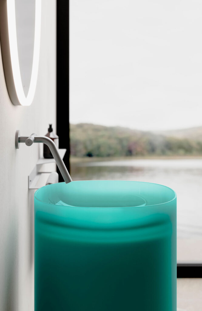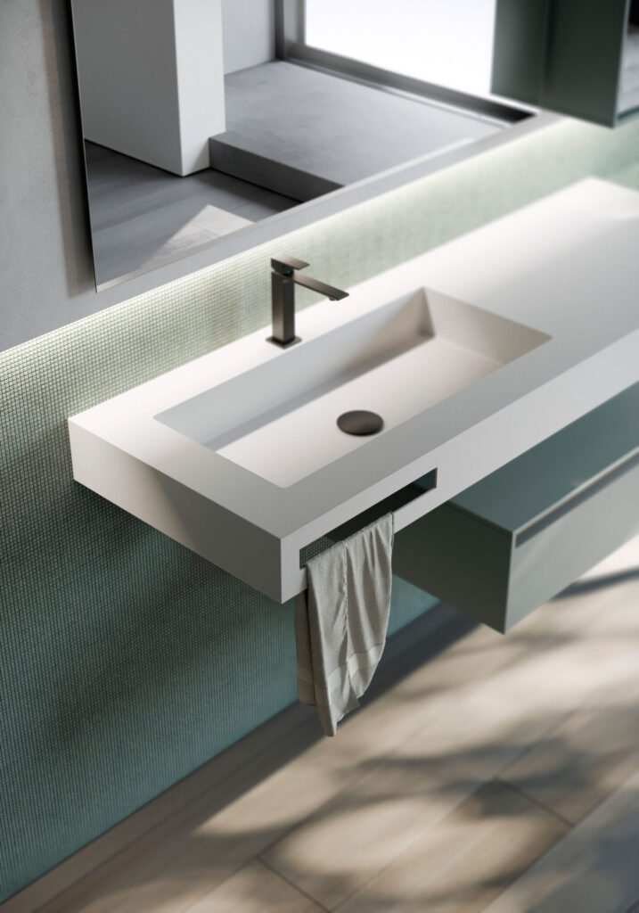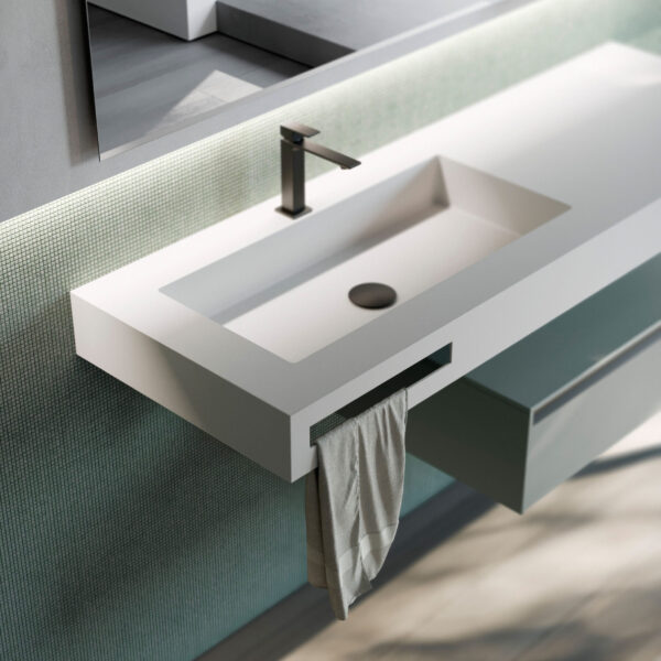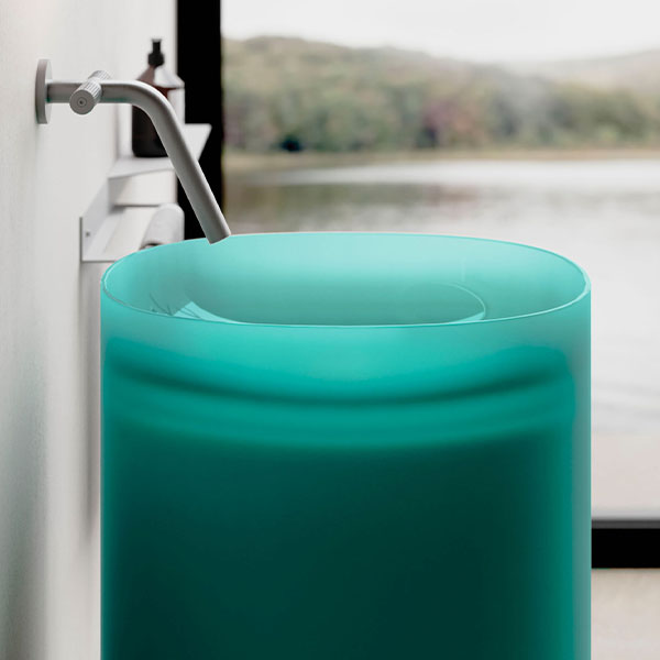 Aquagel – это композит из природных минеральных наполнителей и полимерных смол, покрытый смоляной пленкой, которая придает изделию абсолютную непроницаемость, отличную стойкость к химическим веществам и тактильные ощущения, очень похожие на ощущения от керамических изделий, но с превосходными эксплуатационными характеристиками и большими эстетическими возможностями. Он доступен как в глянцевом, так и в матовом исполнении, в белом варианте или в цветных версиях из каталога образцов Ideagroup (с исключением черного и металлического цвета). Этот материал также обладает антибактериальными, огнестойкими и самозатухающими свойствами.