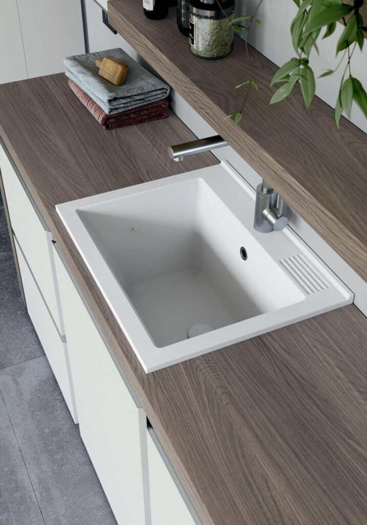 Для HPL рекомендуется всегда содержать поверхности в чистоте и сухости, протирая их теплой водой и тряпкой. Некоторые часто используемые продукты необходимо немедленно удалять с поверхности, например: карамель, свекольный сок, концентрированный томатный сок, очень сильные санитарные отбеливатели. Для раковины из Mineralsolid достаточно очистить поверхность мыльной водой или обычными моющими средствами, чтобы удалить большинство пятен и грязи, используя абразивные губки. Для поверхности HPL не используйте абразивные губки, агрессивные обезжириватели, кислоты или спирт, так как они могут изменить цвет или поцарапать поверхность. А для раковин из Mineralsolid рекомендуются абразивные материалы.